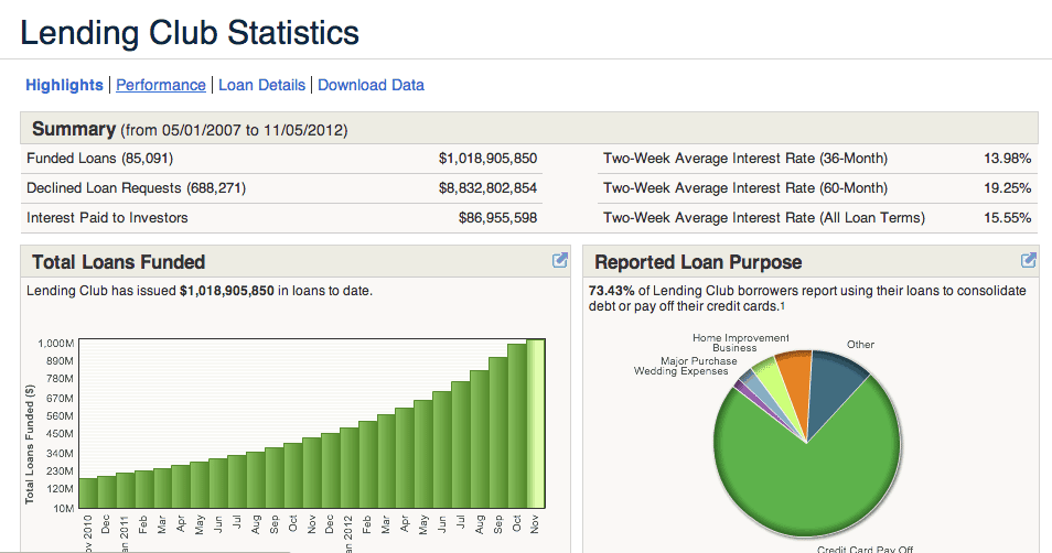 Debt-based crowdfunding portal Lending Club surpassed $1 billion (with a B) dollars in funded loans today. On that billion dollars, approximately $85 million in interest payments were made to investors.