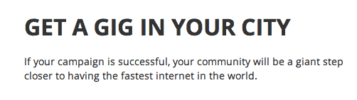 Alternatively, service providers, community organizations, local governments and even citizens can start a new “greenfield” campaign. A greenfield campaign allows campaign owners to draw geographic neighborhoods, called zones, on a map, set goals for either an amount of money needed or number of backers, define pledge levels, raise funds and aggregate demand.