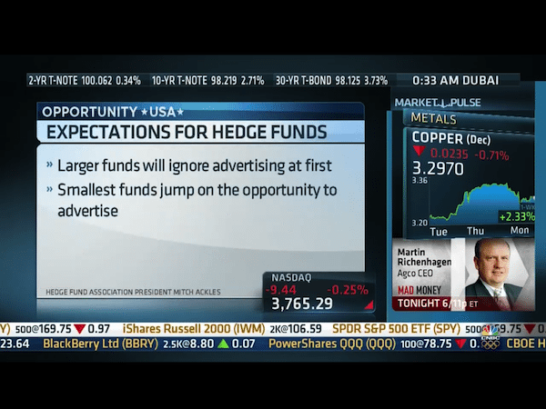 Financial news network CNBC puts their own spin on the change in regulations which allows general solicitation for private placements. This segment, which aired earlier today, also includes a quote from former NASDAQ Vice Chairman David Weild indicating there is potential for “billions” in new ads.