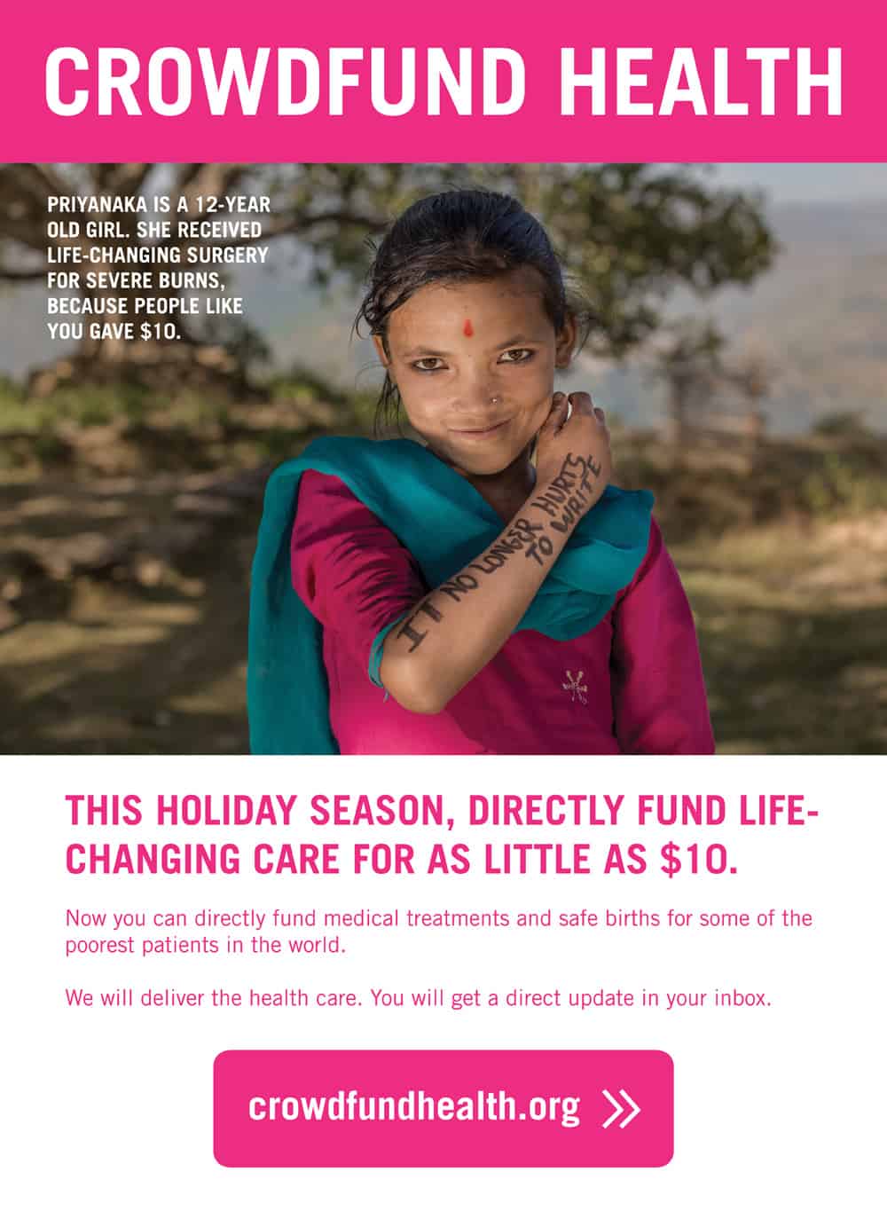 Donate Health to World’s Most Vulnerable. An alternative for last-minute gifts: Crowdfunding medical treatments and safe births.