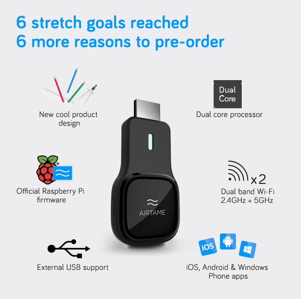 Each stretch goal set by the Airtame team has been met. The additions to the product facilitated by reaching these goals include: