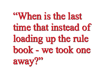 “When is the last time that, instead of loading up the rule book – we took one away? That never happens, and it’s a shame.”