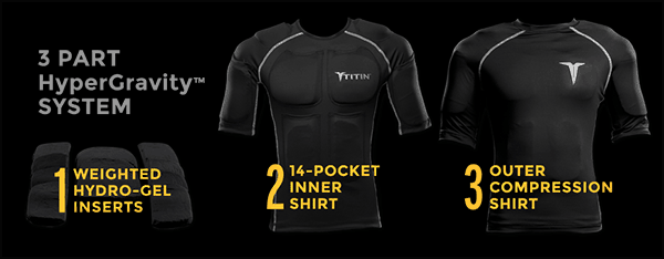 inserts are worn under a top compression layer and help strengthen both muscles and tendons, enabling athletes to increase their calorie burn, lengthen their vertical leap and push their endurance and speed to the maximum level. The versatile gel inserts can be heated or frozen for post-workout temperature therapy and stay pliable at any temperature. The body naturally creates muscle fibers when placed under additional weight, and the TITIN Force System capitalizes on this type of resistance training. The TITIN Force Shirt System adds an extra eight pounds while the TITIN Force Shorts System provides an additional five pounds, giving athletes the option to train under 13 additional pounds of resistance.