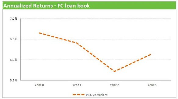 While Funding Circle tested 9 different scenarios, the base example of (from PRA / BOE):