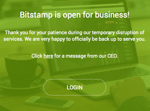 Bitstamp is open for business! Thank you again for your patience during this time. Read letter from CEO @nejc_kodric: http://t.co/yZzZRILtuk