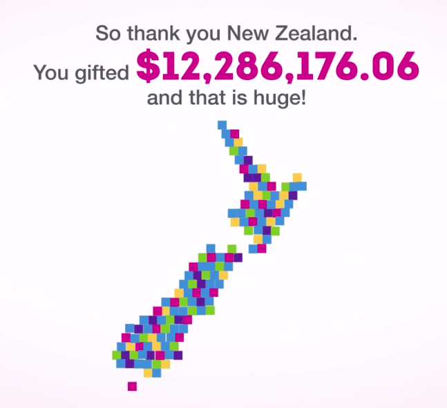 they have raised over $20 million NZ but things have been picking up a bit. For 2014 about $12.3 million NZ was donated to charitable causes from 184,677 donations. This amount represents growth of an impressive 135% over 2013. The average donations stood at $66.53 with the largest pegging $25,000.