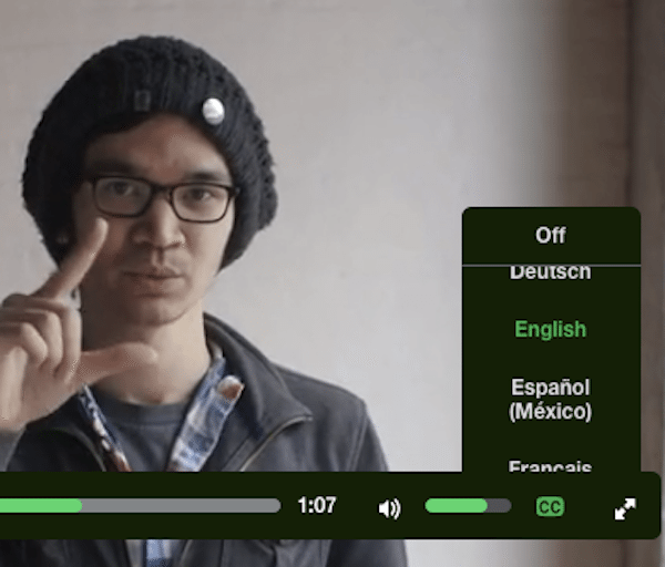 “Take a look at the video above to see it at work! Notice that “CC” symbol in the upper-right corner, and in the player controls? Hover over the controls to bring up a list of caption tracks, and choose the one you need: