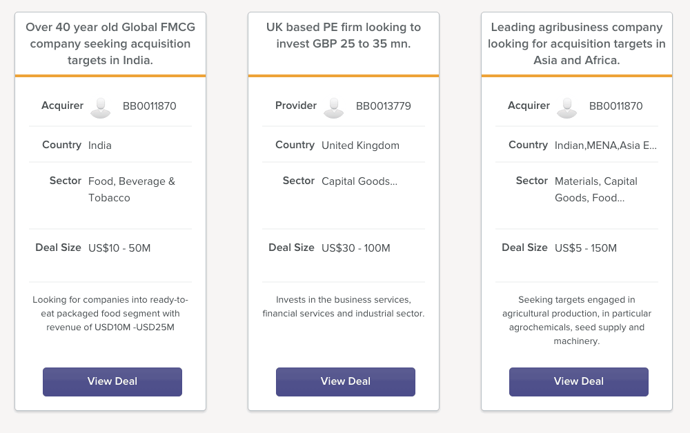 BankerBay was founded in 2013 and within 12 months the online platform had attracted over $15 billion of deals. According to BankerBay, currently $4 – $5 billion of deals are submitted to the siteĀ each month from around the world, of which approximately $2 billion get through the vetting and curation process. Most deals are middle market ranging from $10 to $200 million.