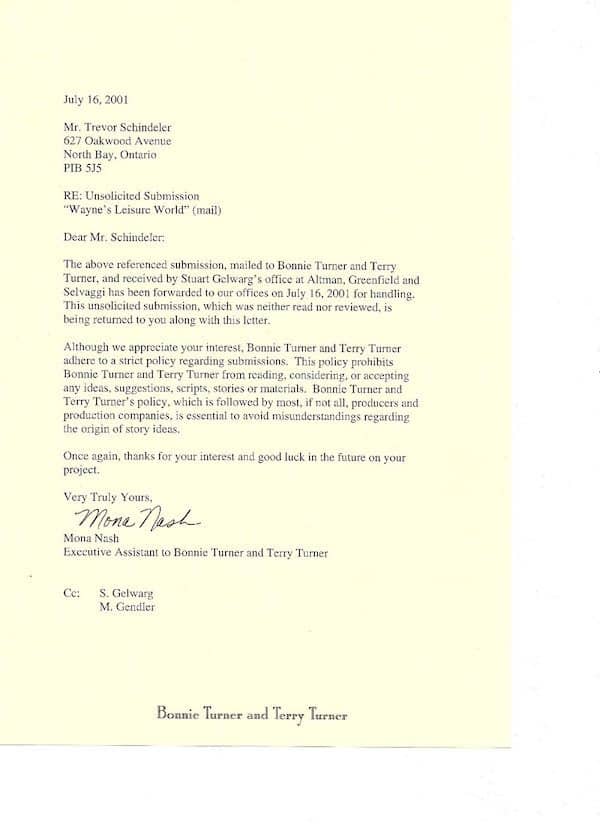 “Being young and naively optimistic, much like Wayne and Garth themselves, I assumed that I could get someone inside Fortress Hollywood to read my work. Surely, Hollywood is looking for great stories. I sent out query letters to everyone associated with the Wayne’s World franchise including producers, directors, writers, and actors. I was stonewalled. No one would even read my synopsis. I set this project aside for a number of years. Then, around the turn of the century, I took another shot at it. On February 22,2001 I registered a longer treatment titled Wayne’s Leisure World; The Final Sequel?”