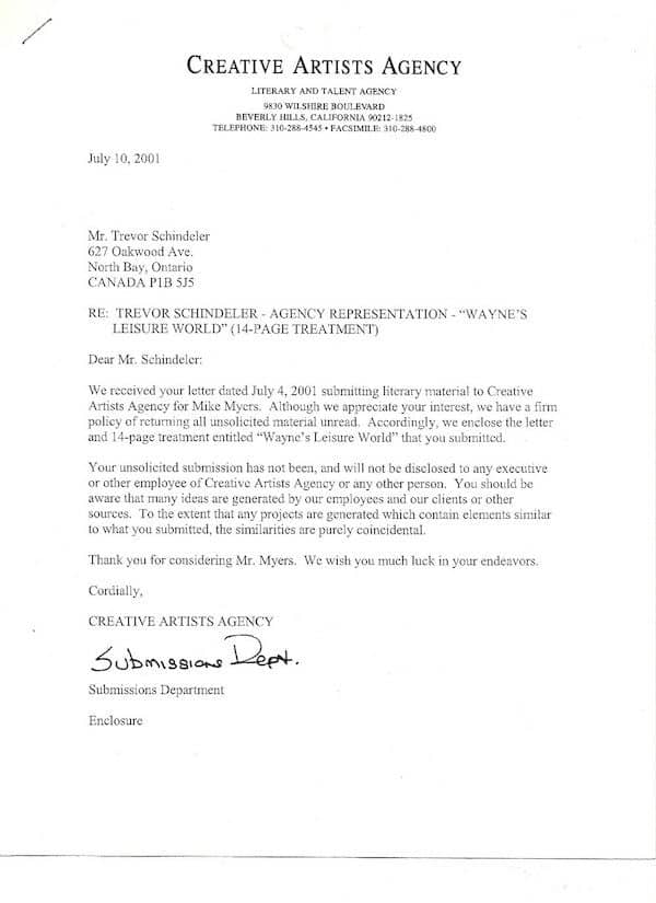 Unfortunately, he hasn’t had any luck what’s so ever in regards to bringing his work to anyone’s attention. He received a letter from Mike Myers (who co-wrote the films) along with the other co-writers Bonnie and Terry Turner.