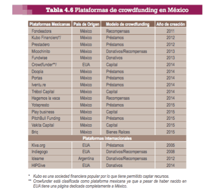 “Crowdfunding has many benefits pertaining to the issue of financial inclusion, which is one of the interests of the CNBV, and what we want is a method for people to address financial issues and crowdfunding is the way in which could reach more Mexicans , “said Carlos Orta, vice president of regulatory policy CNBV in an interview with Expansion .” [translated from Spanish]