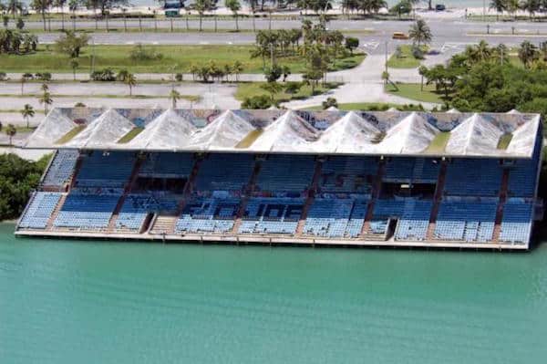 The Miami Marine Stadium, which was constructed in 1963, features more than 6,500 seats. Heineken states that the structure is considered a “monumental achievement in civic architecture and modern construction.” Unfortunately in 1992, the stadium was severely damaged by Hurricane Andrew, and it was abandoned.