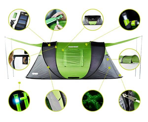 Described by its creators as the world’s “most advanced” pop-up tent, Cinch! is solar powered and heat regulated. It also comes with LED lighting, extendable canopies, and equipped for the dark. Project creator, Jake Jackson shared: