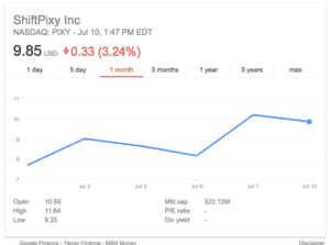 ShiftPixy raised $12 million in a Reg A+ offer with the assistance of WR Hambrecht. The crowdfunding round closed on June 29th. Â The following day (June 30th), shares in ShiftPixy started trading on NASDAQ. The Reg A+ offer saw 2 million shares sold at $6 per share. Today, shares in ShiftPixy are trading at over $9 a share representing a respectable increase in share value for early investors. ShiftPixy has traded over $11/share in the past few days.