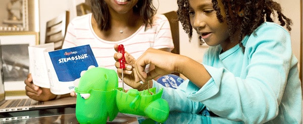 “Kids build a natural relationship with most toys, but STEMosaur goes beyond that. It’s a buddy that teaches math, science, grammar, coding, and much more. Kids are naturally inquisitive. We want to get kids excited about engineering and thinking about how all these components come together and function together. They have to connect the battery pack to the hardware chip and the wires to the LEDs. It takes about 10-12 minutes, and it really adds to the child’s sense of ownership with the dino.”