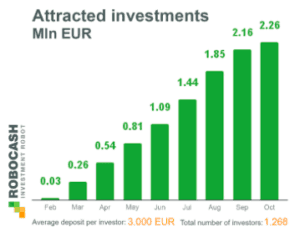 Taking into account that 150 new investors on average join Robo.cash monthly, the October’s figure is 32% higher the average and comprised 198 customers that is 10 points more the previous record made by the platform in August 2017. By the moment, there are 1,268 registered investors.