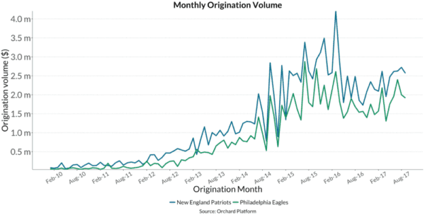 For the past several years Orchard, the digital marketplace that connects institutional money with online lenders, has predicted the outcome of the Super Bowl. The Fintech firm uses lending data as the basis for their predictions – specifically Loan Volume, Borrower Characteristics, Vintage Characteristics, and Loan Performance of borrowers in their respective media markets. In this years analysis, Orchard compares the two metropolitan markets using Lending Club loans originated from 2010 through September 2017.