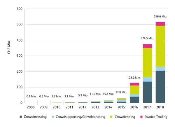 Since the industry launched eleven years ago, CHF 1.085 billion has been raised through crowdfunding.