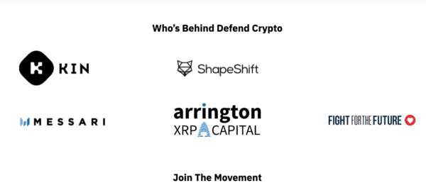 Kik still lists staunch crypto supporters; Shapeshift, Messair, Arrington XRP Capital, and Fight for the Future as backers.